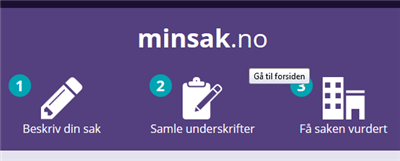 Alle over 18 kan foreslå en sak. Se mer på minsak.no